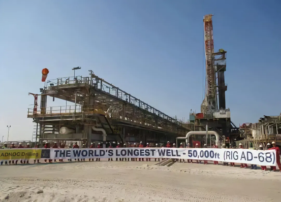 ▲2011年12月,东方宏华与该客户签订9套3000HP人工岛丛式井钻机合同,并于2014年成功交付。该批次钻机创造了世界上最长的16154米定向井长度纪录,且全球最长的5口井均为该批次钻机在阿布扎比的Zakum岛完成。