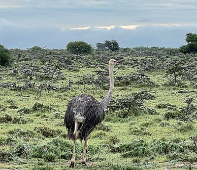在位于苏丹的中国石化地球物理公司青尼罗河5B区项目附近活动的鸵鸟。许建峰摄